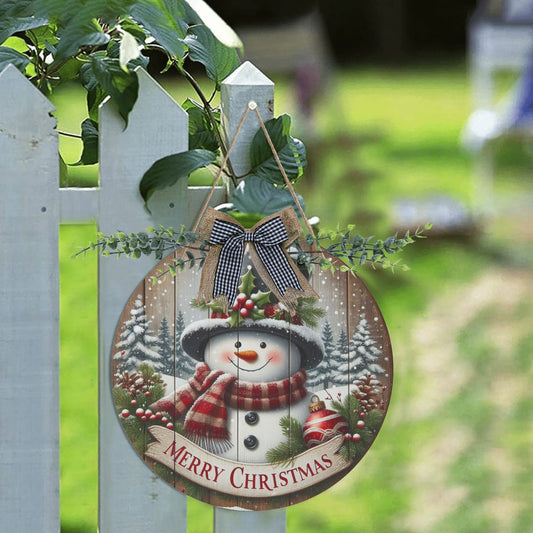 12 Inch Round Christmas Acrylic Welcome Sign - Snowman & Holly Folk Art Hanging Ornament for Door & Wall Decor
