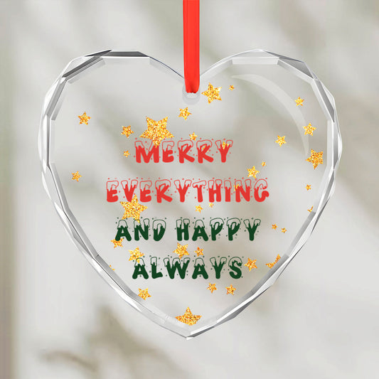 Christmas Merry Everything and Happy Always Glass Heart Ornament (Mirror Print)