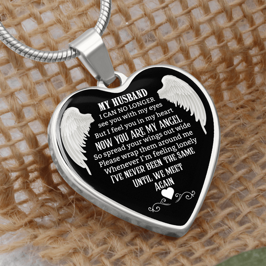 Husband Memorial Heart Pendant, Personalized Angel Keepsake, Sympathy Jewelry Gift