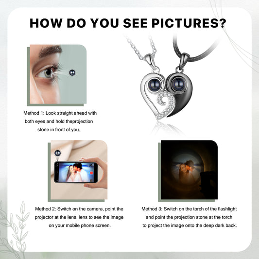 Custom Couple Projection Heart Necklace Set – Personalized Photo Inside Matching Love Jewelry