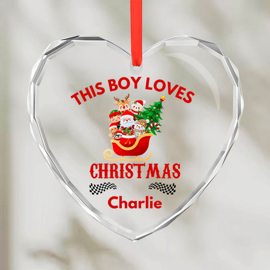 This Boy Loves Christmas – Personalized Glass Heart Ornament