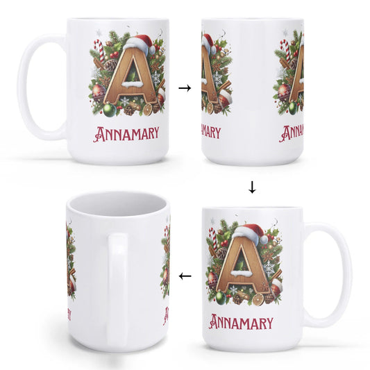 Christmas Personalized White Glossy Mug 15 oz with Name and Letter