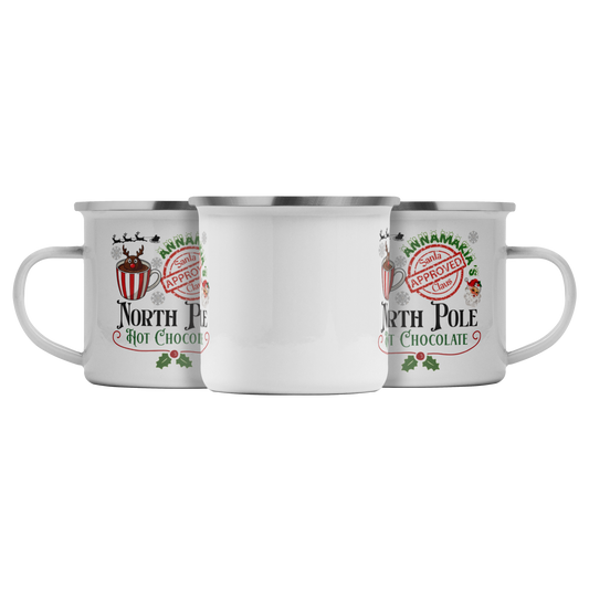 North Pole Hot Chocolate Enamel Camping Mug | Personalized Christmas Gift | Santa Approved