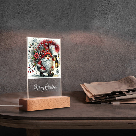 Personalized LED Rectangle Acrylic Night Light and Wooden Base Table Decor