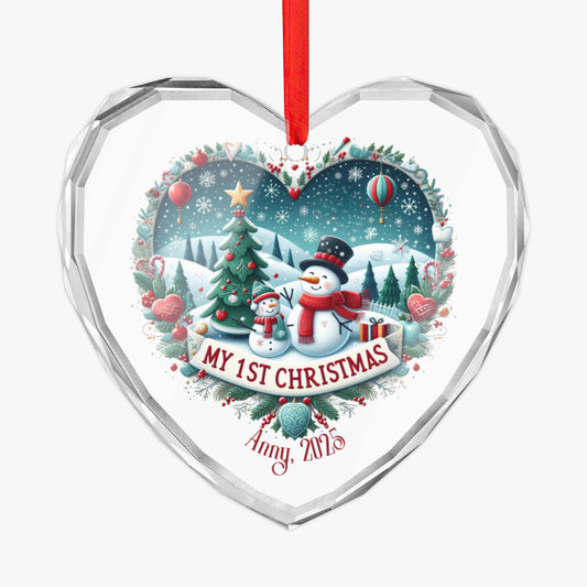 Personalized “Christmas in Heaven” Glass Heart Ornament – Memorial Keepsake for Loved Ones