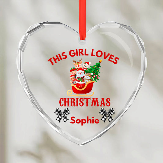 This Girl Loves Christmas – Personalized Glass Heart Ornament