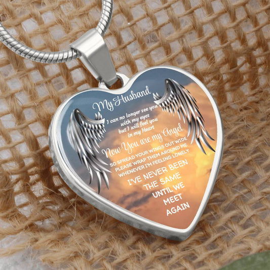 Luxury Heart pendant Necklace my Husband now you are my Angel