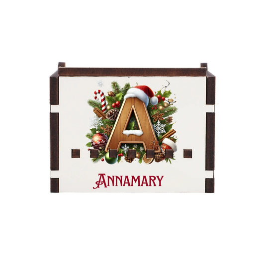 Personalized Christmas Wooden Music Box with Initials & Name for Gifts