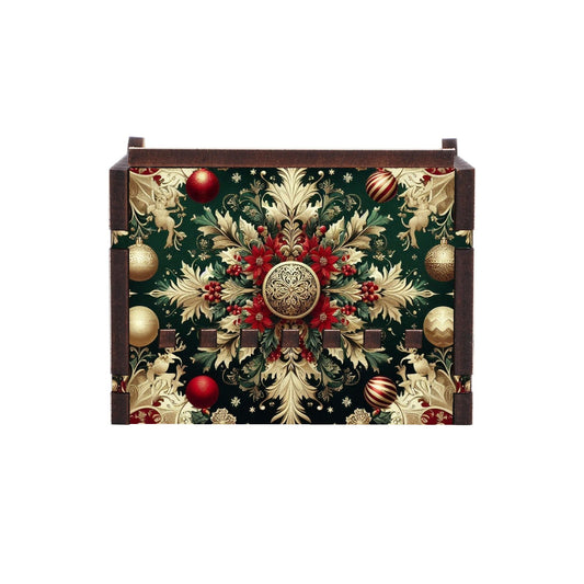 Baroque-Inspired Festive Music Box - Handcrafted Wooden Personalized Gift with Holly & Ornament Design for Christmas