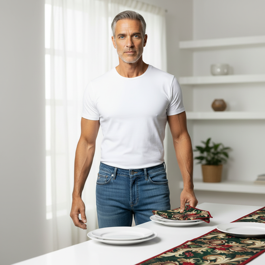 Festive Damask Cloth Napkins – Red & Green Christmas Table Decor Set (Set of 4)