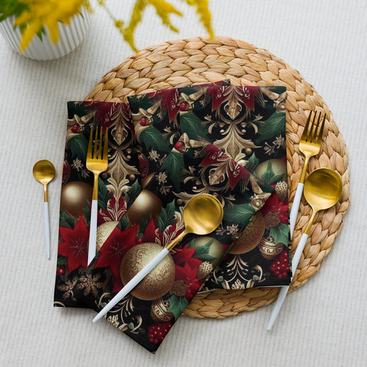 Christmas Damask Cloth Napkins | Polyester Holiday Table Decor, Set of 4