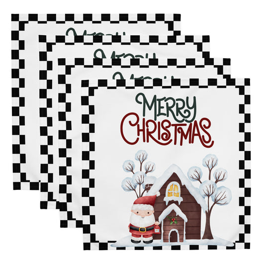 Personalized Checkered Christmas Cloth Napkins | Holiday Dinner Decor