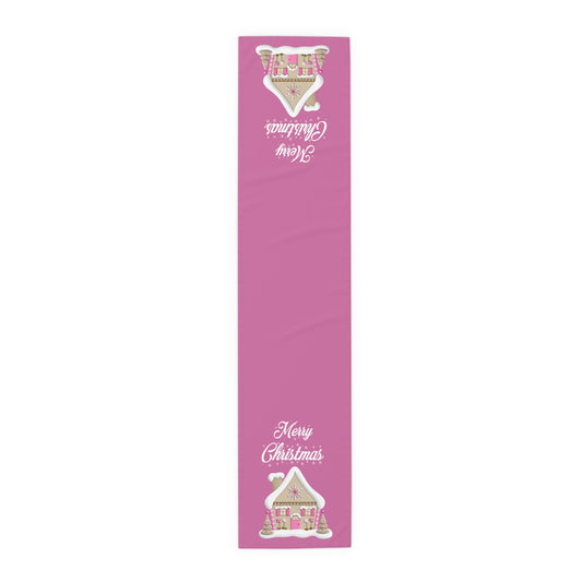 Christmas House Table Runner - Festive Holiday Decor Pink Merry Christmas, Dining Room Kitchen Decor, Home Decoration,