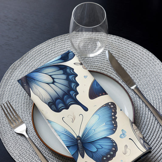 Cloth Napkin Set Blue Butterflies Reusable Soft Table Linens Elegant Floral Napkins for Kitchen Wedding Party or Housewarming Gift