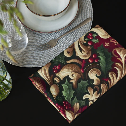 Green Cloth Napkin Set with Red Hibiscus Flower – Reusable Floral Table Linens for Dining & Special Occasions