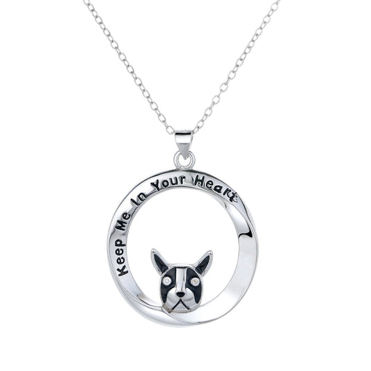 Sterling Silver “Keep Me in Your Heart” Dog Pendant Necklace – Pet Memorial Jewelry Gift