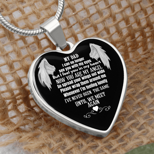 Dad Memorial Heart Necklace – Angel Wings Keepsake, Bereavement Gift