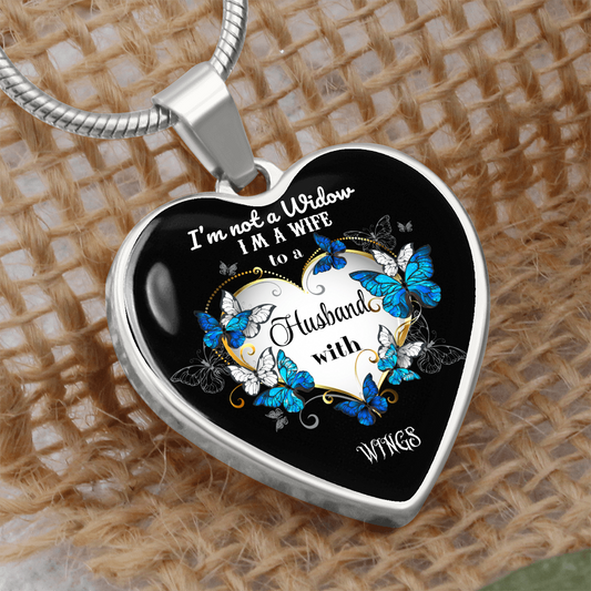 Luxury Graphic Heart Necklace I'm not a Widow Butterflies design