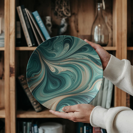 Wood Cutting Board Resin Blue green Wave Pattern