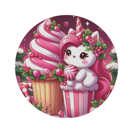 Christmas Round Rug - Pink Muffin Decoration, Holiday Round Mat, Festive Home Decor, Cozy Christmas Rug, Winter Rug, Holiday Area Rug