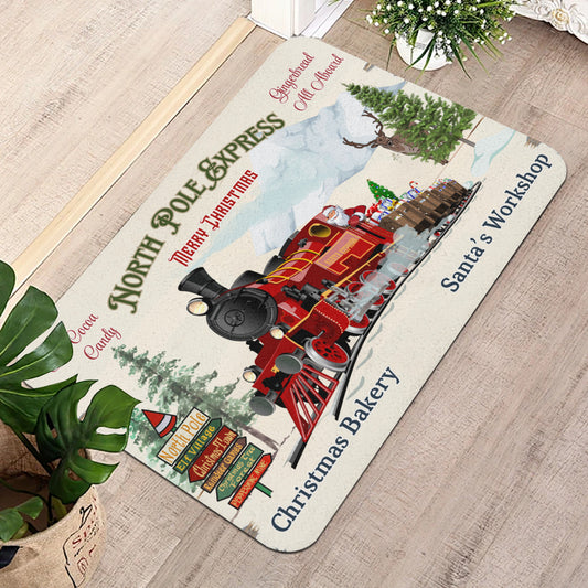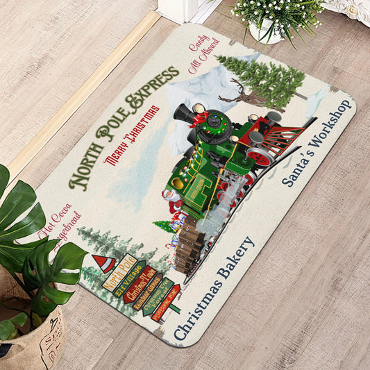 Christmas North Pole Express Train Doormat | Welcome Holiday Rug | Indoor Outdoor