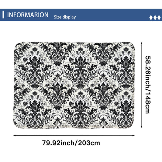 Custom Baroque Revival Round Flannel Door Mat - Personalized Black & White Damask Pattern - Non-Slip Entryway Rug for Housewarming Gift (80X80cm/100X100cm)