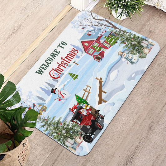 Welcome to Christmas Door Mat | North Pole Express Train Rug | Non-Slip Holiday Home Entry Mat