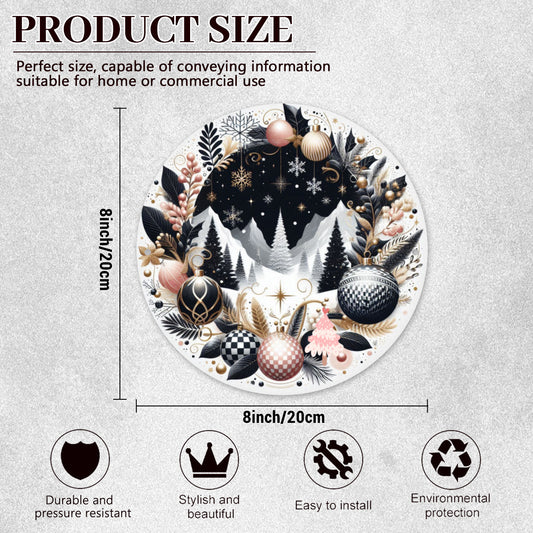 Round Christmas Metal Sign – Holiday Wreath Accent for Front Door or Home Decor