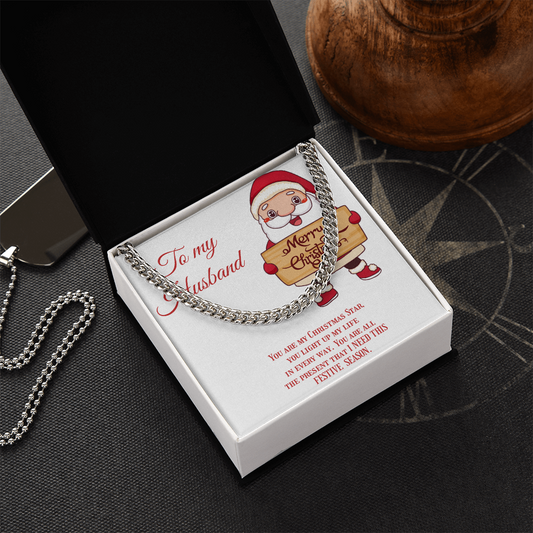 Cuban Link Chain – Christmas Gift for Husband, Includes Merry Christmas Message Card