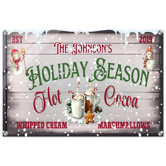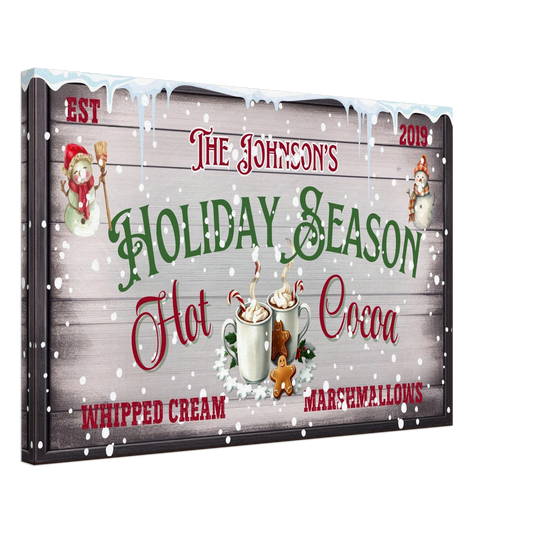 Personalized Christmas Hot Cocoa Bar Canvas Sign: Retro Farmhouse Holiday Decor, black frame decoration