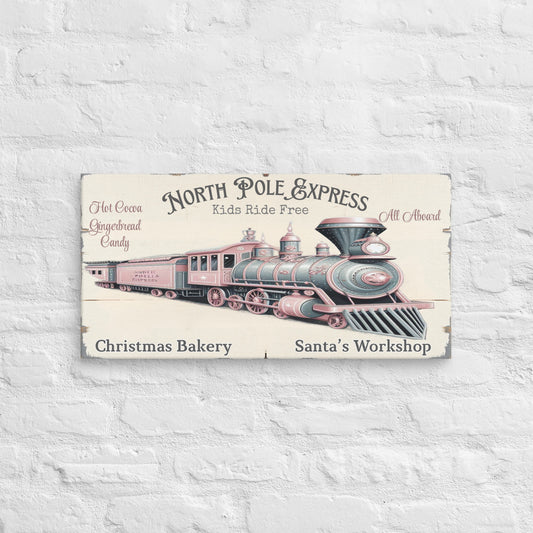 North Pole Express Christmas Wall Art Canvas – Holiday Train Scene | Personalized Festive Home Décor Gift