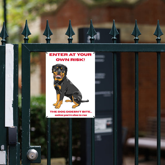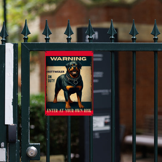 Rottweiler Warning Sign – Funny Metal Guard Dog Sign for Fence or Gate | “Enter at Your Own Risk” Outdoor Pet Safety Plaque