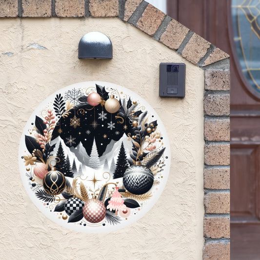 Round Christmas Metal Sign – Holiday Wreath Accent for Front Door or Home Decor
