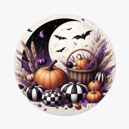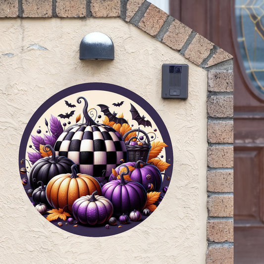 Pumpkin Round Sign , Wall Art– Fall Door Decor or Wreath Centerpiece for Autumn Vibes