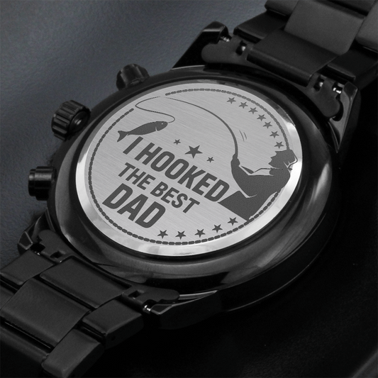 Black Chronograph Watch with Engraving I hooked the best Dad