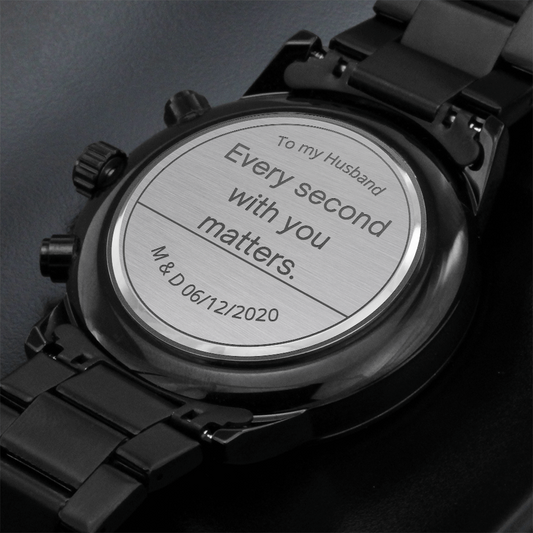 Black Chronograph Watch with Engraving Every second with you matters, personalized