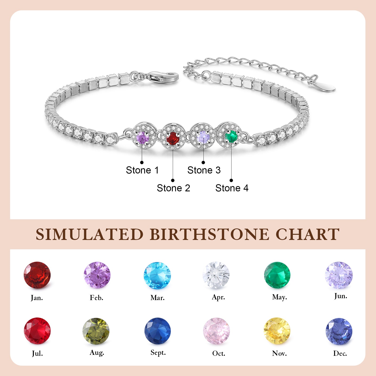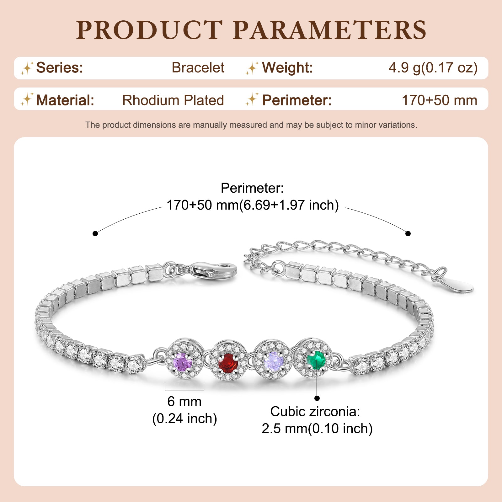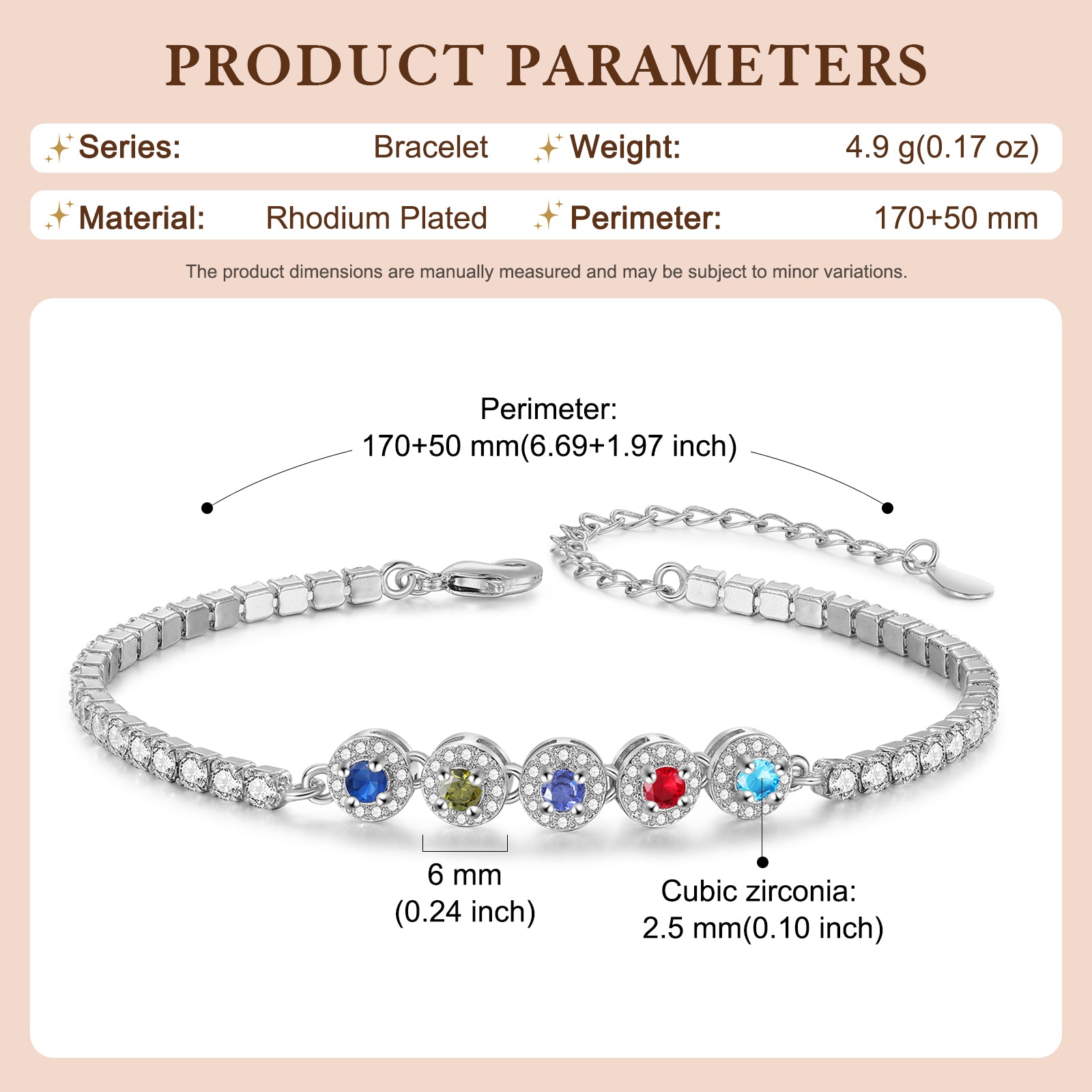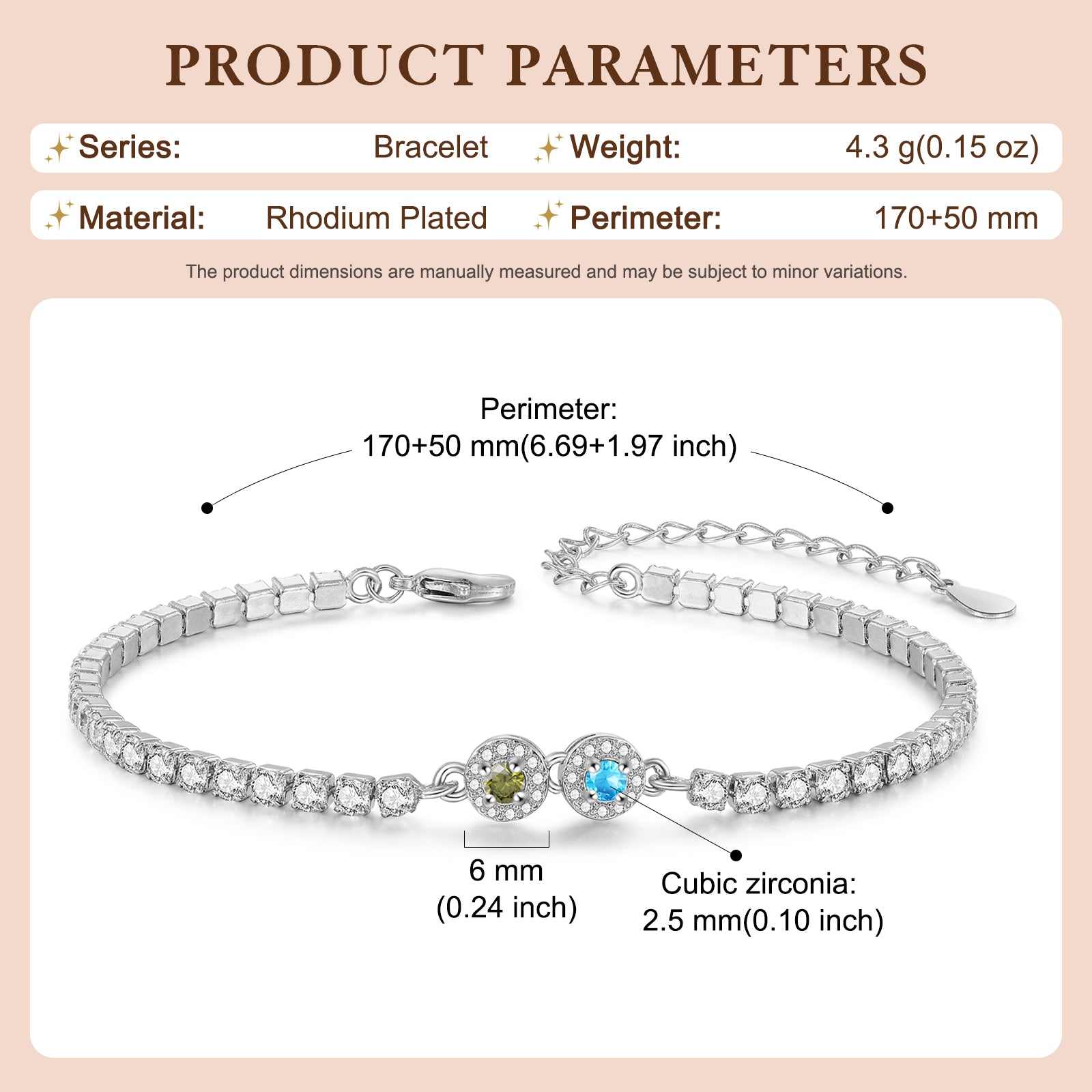 Crafted from durable brass with a sophisticated rhodium plating, this personalized birthstone bracelet combines timeless elegance with meaningful customization. Available in four distinct model variations, it features a refined 6mm chain design with an adjustable 17+5cm length to accommodate various wrist sizes. Weighing approximately 5g, this lightweight piece delivers substantial visual impact while maintaining comfortable everyday wearability. The rhodium finish provides a lustrous, tarnish-resistant surface that preserves its pol
