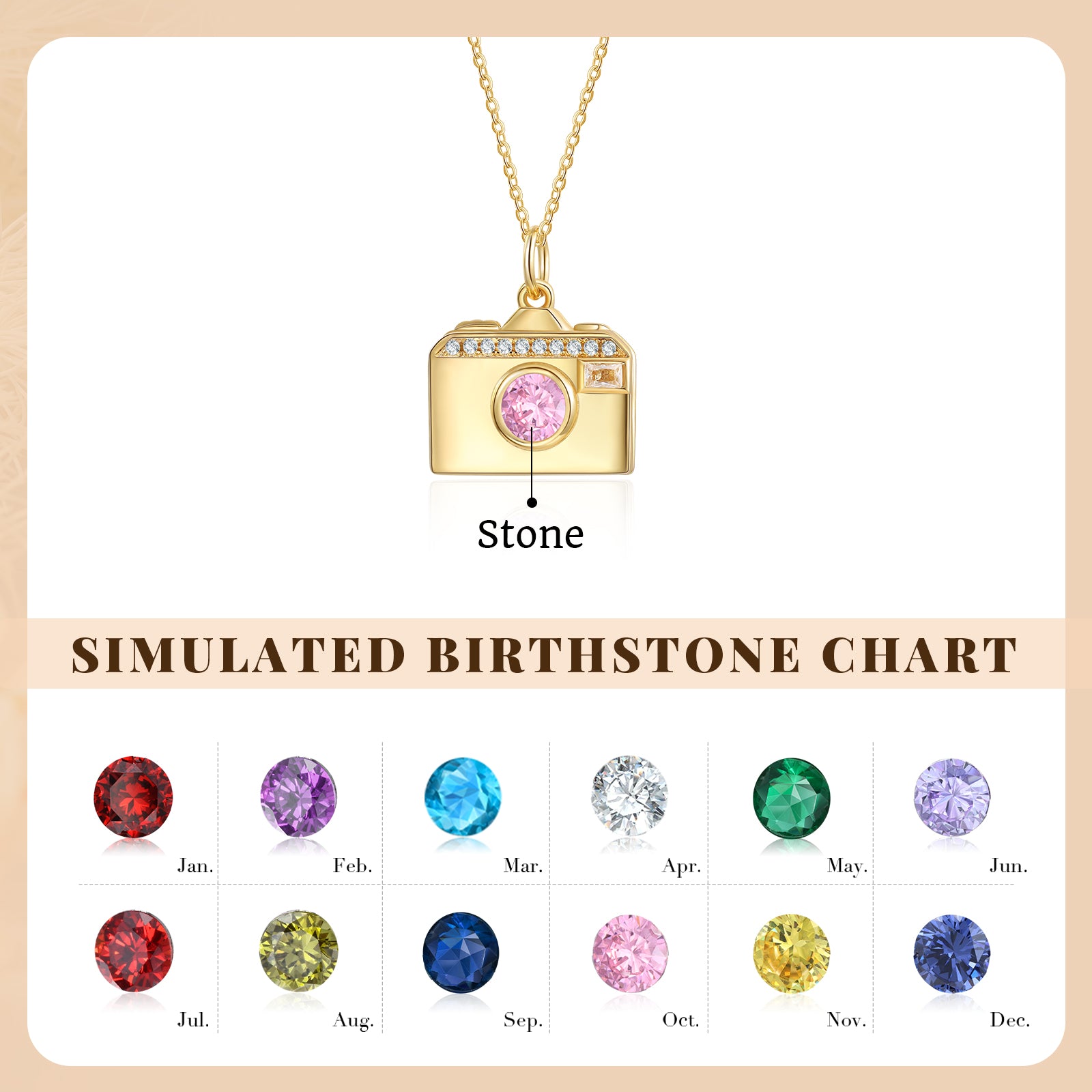 Brass Personalized birthstone & photo necklace