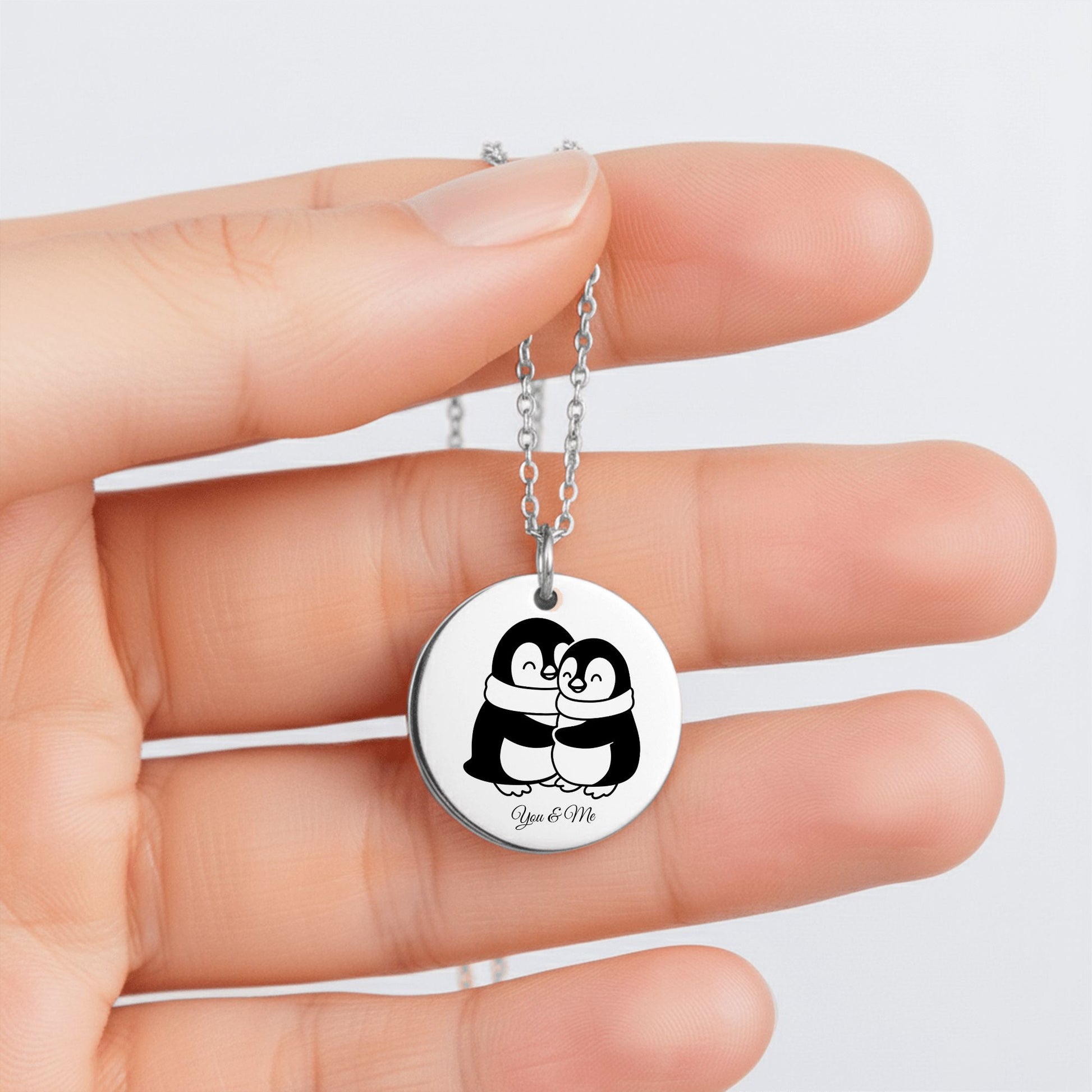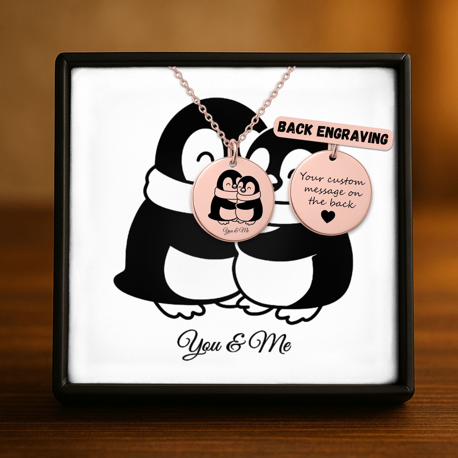 Personalized Penguin Coin Necklace for Couples – Custom Valentine Jewelry