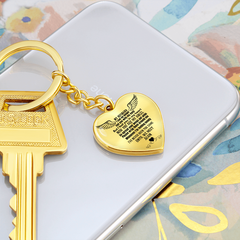 Heart Pendant Keychain for Widows, Angel Remembrance Jewelry Gift for Husband in Loving Memory, Grief Support, Anniversary & Memorial Gift