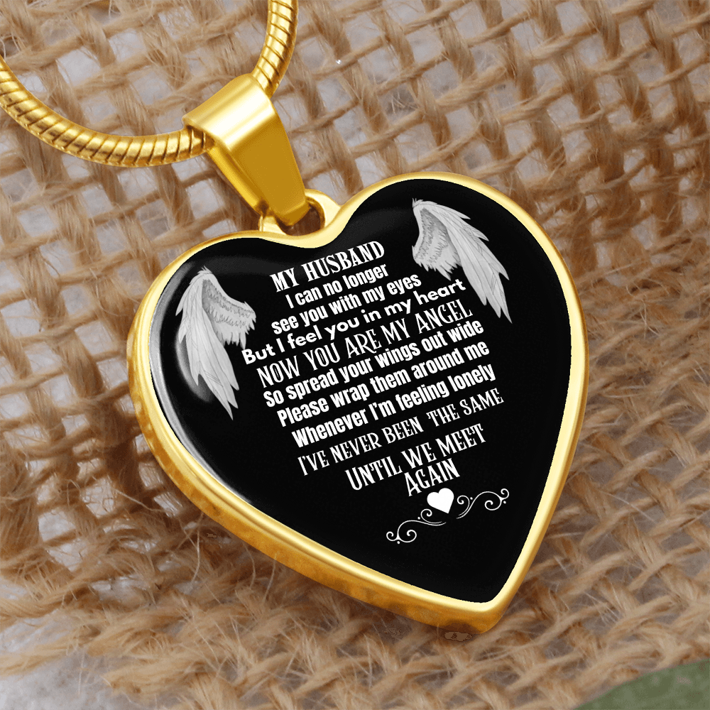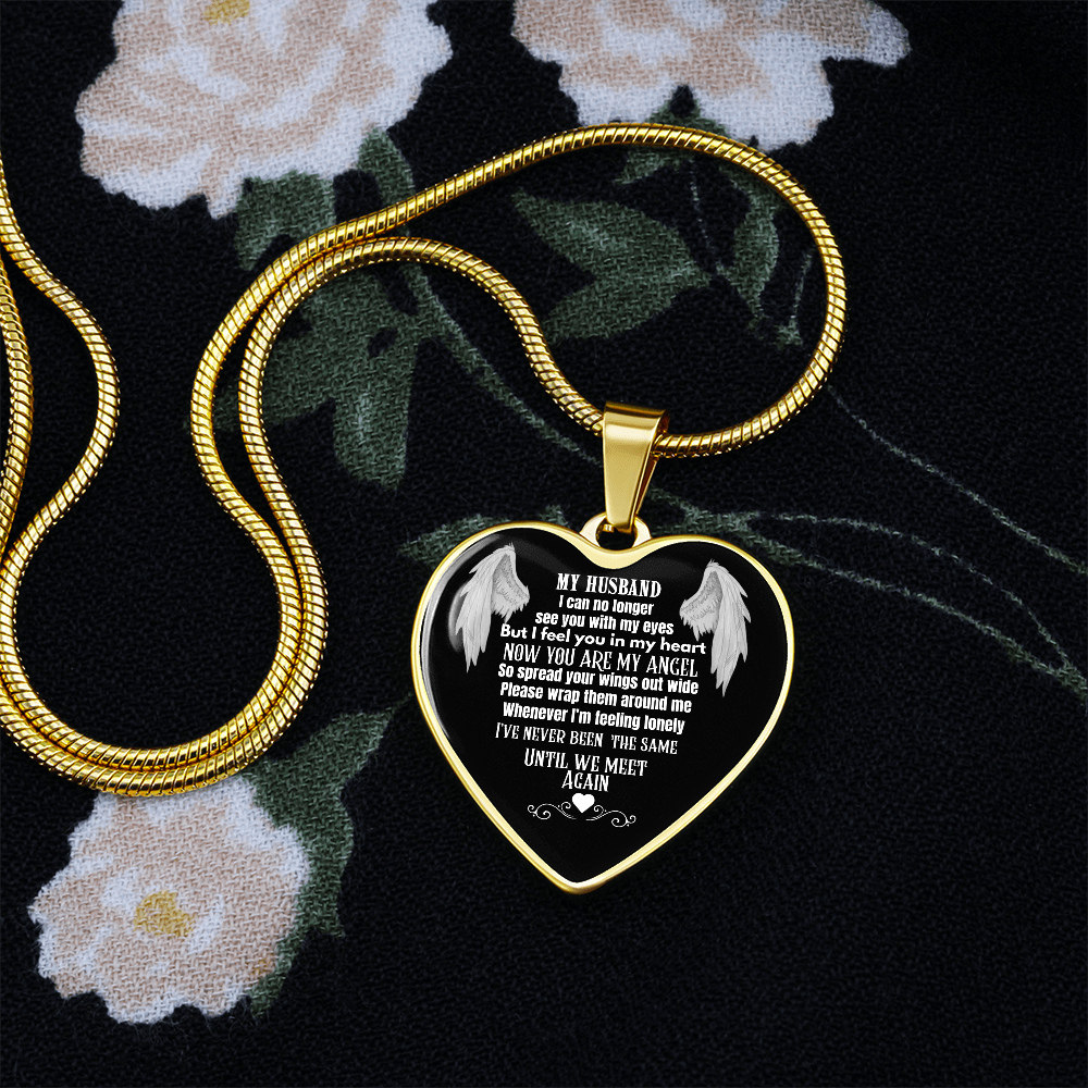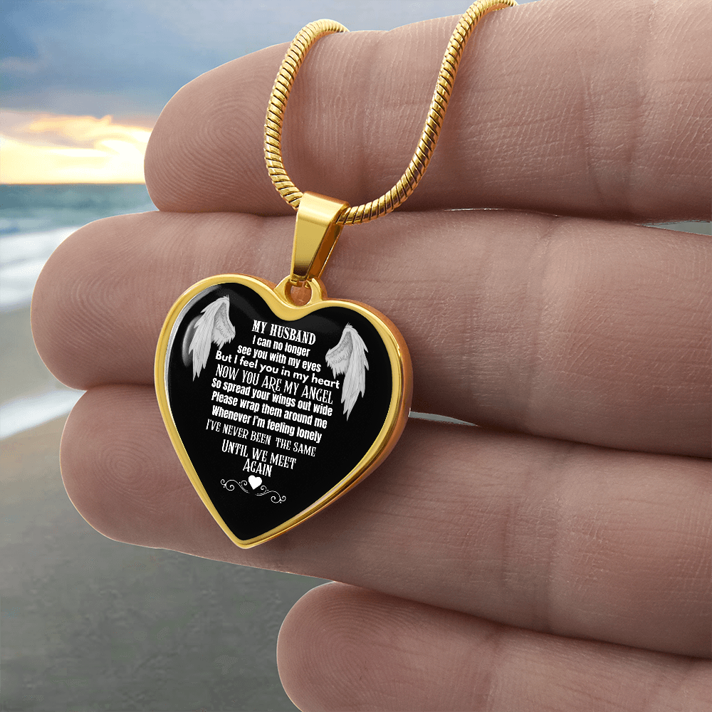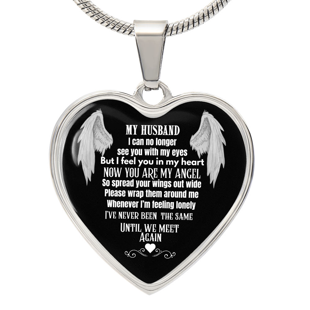 Husband Memorial Heart Pendant Necklace – Angel Memory Keepsake, In Loving Memory Jewelry, Sympathy Gift for Widow