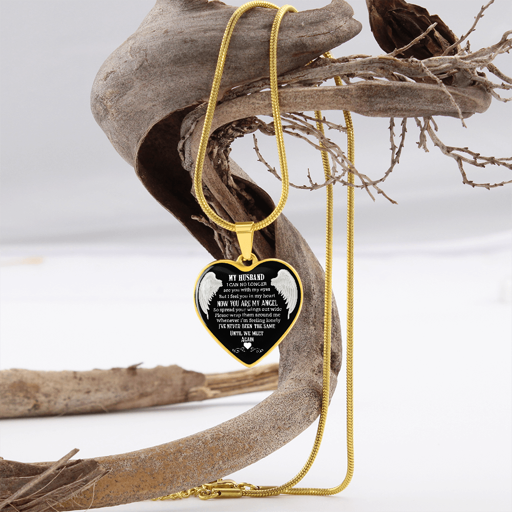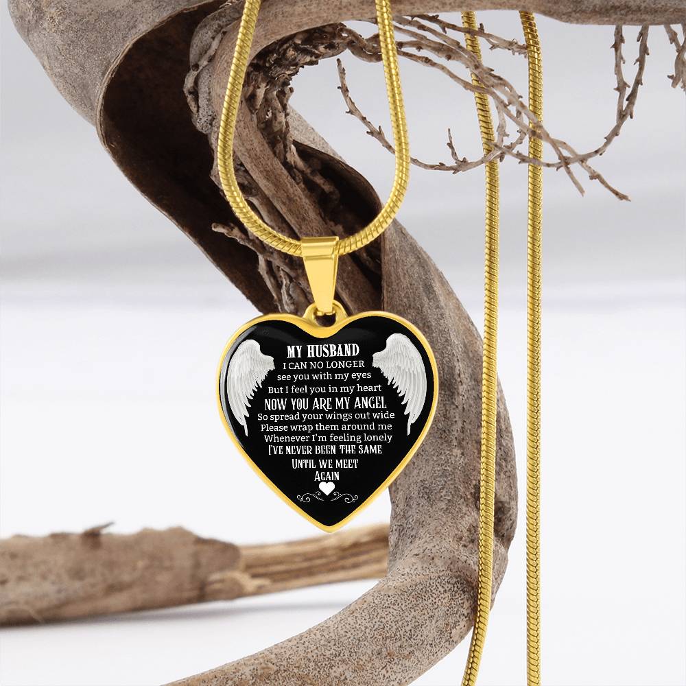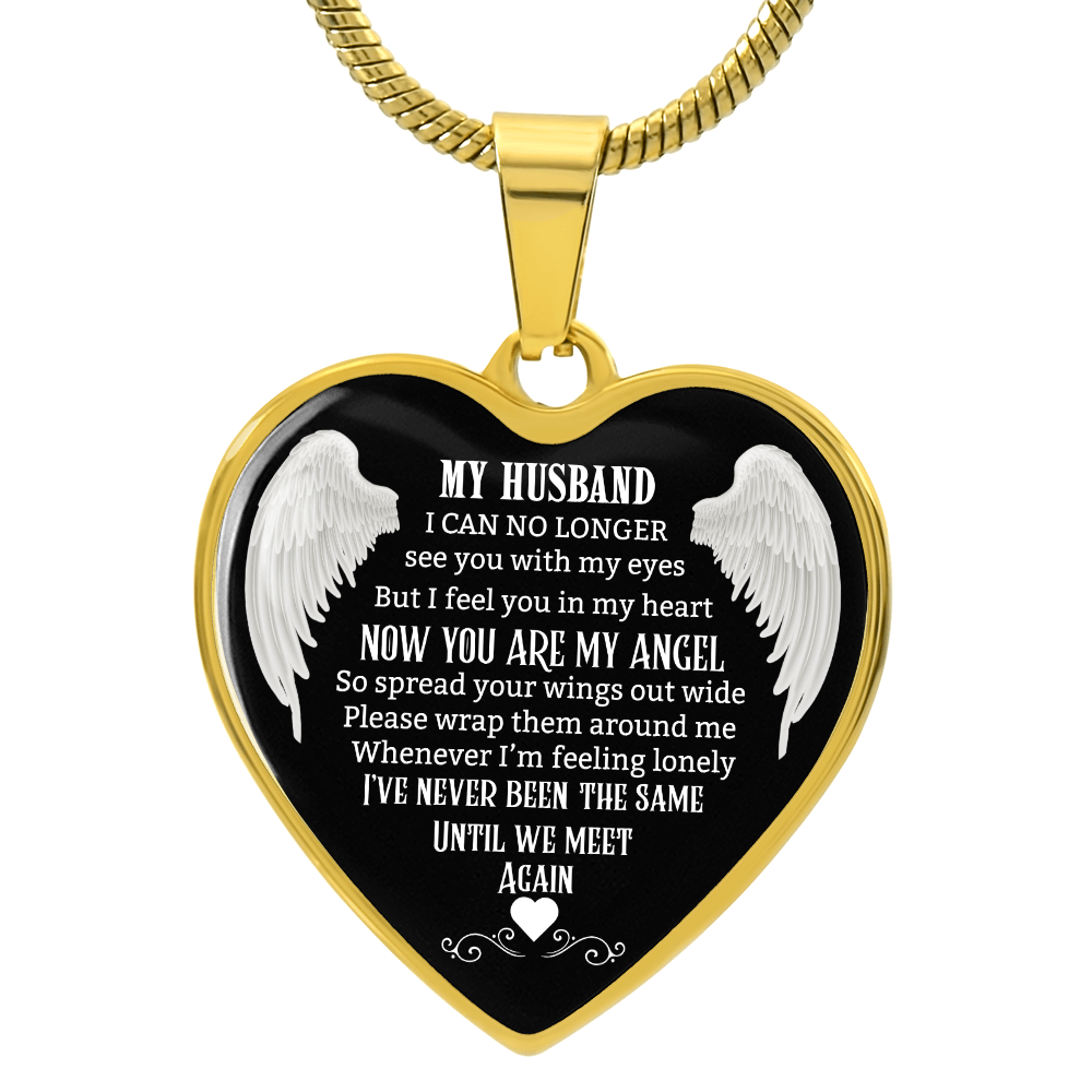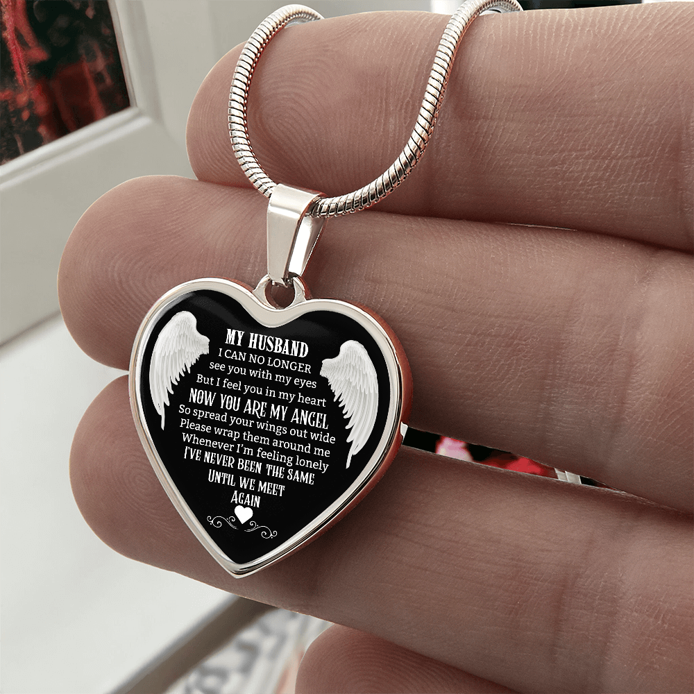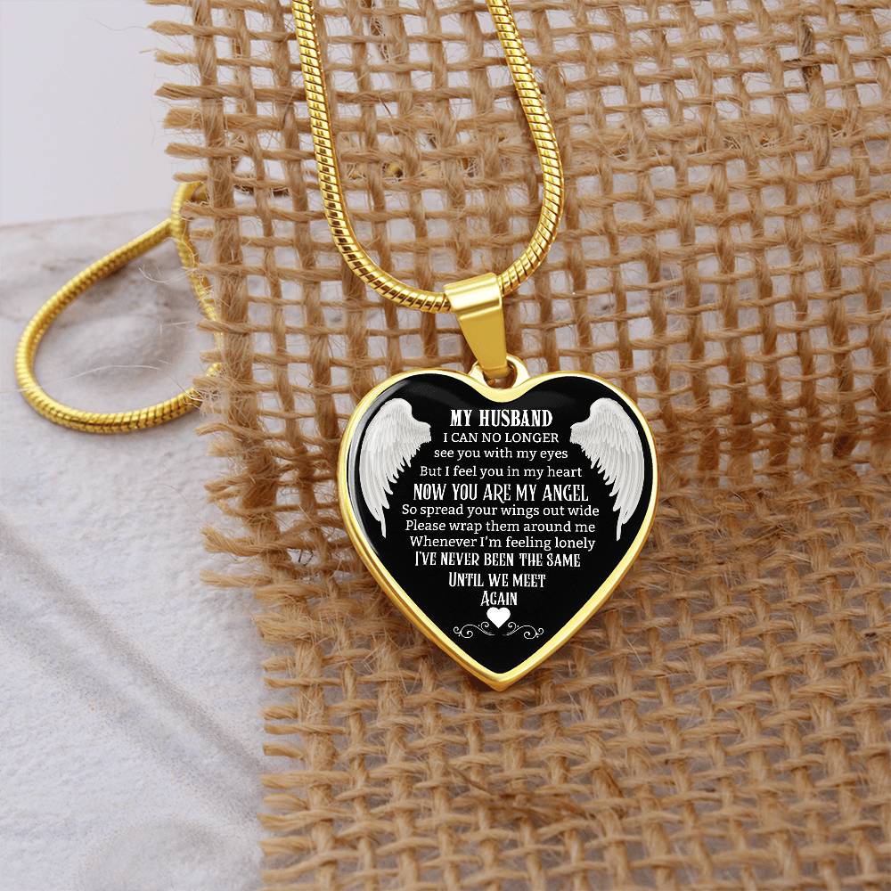 Husband Memorial Heart Pendant, Personalized Angel Keepsake, Sympathy Jewelry Gift