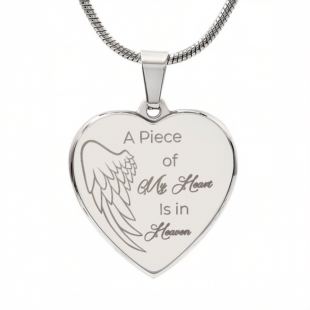 Personalized Engraved Heart Necklace A piece of my Heart is in Heaven