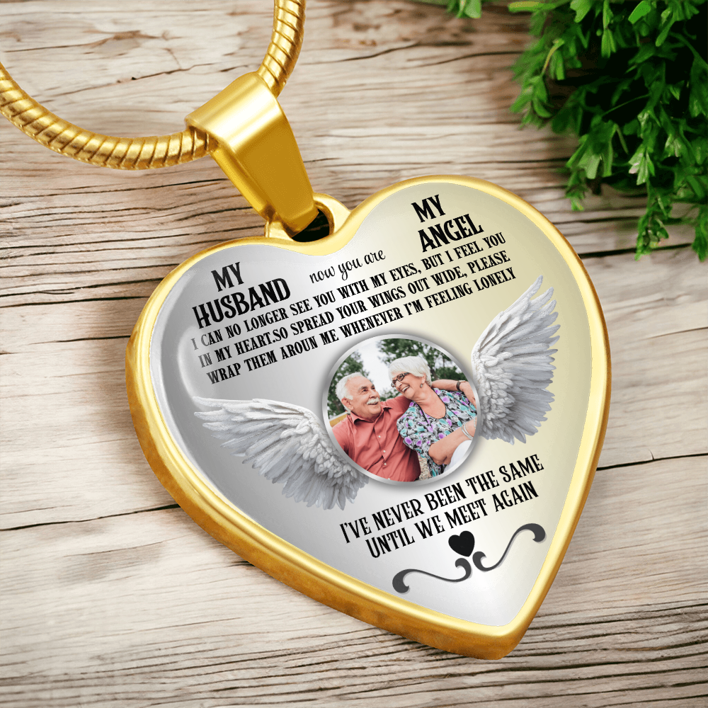 Personalized Memorial Photo Heart Necklace, Husband Loss Remembrance Gift, Custom Sympathy Jewelry, In Loving Memory Keepsake