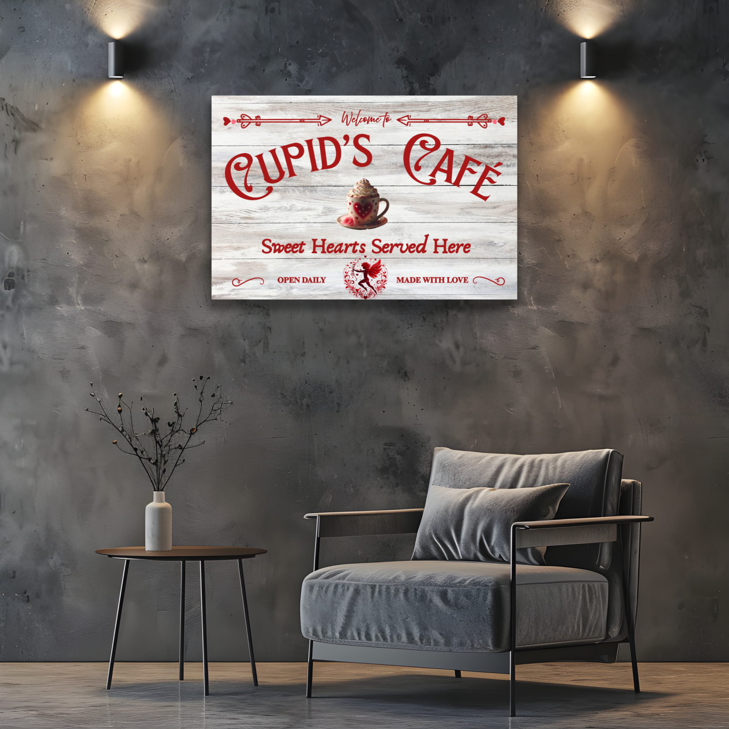 Valentine's Day Canvas Wall art Gift idea, Cupid's Cafe Sign